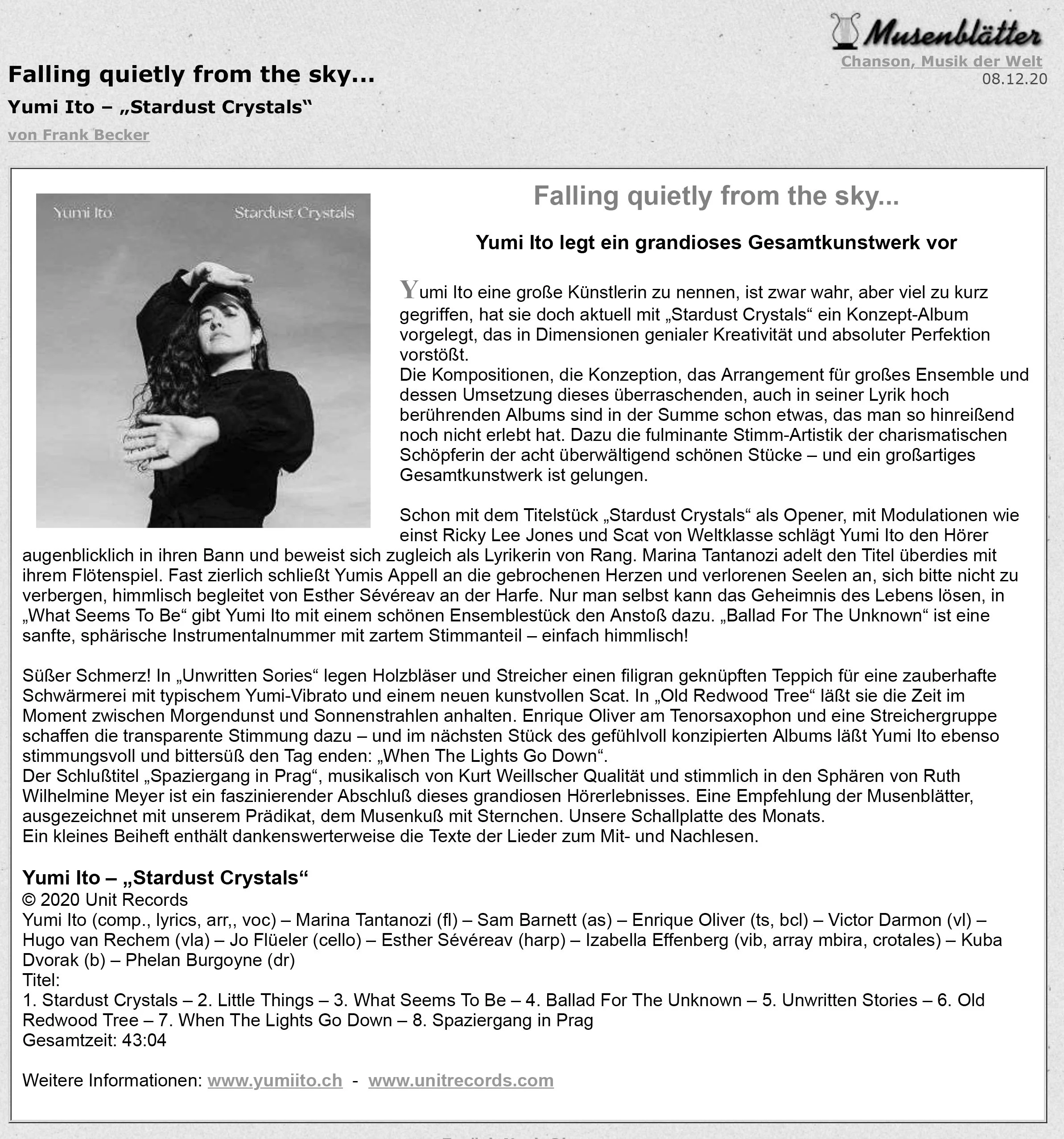 “Ito presents an entire spectrum vocal abilities…all tastefully and mastery executed…”