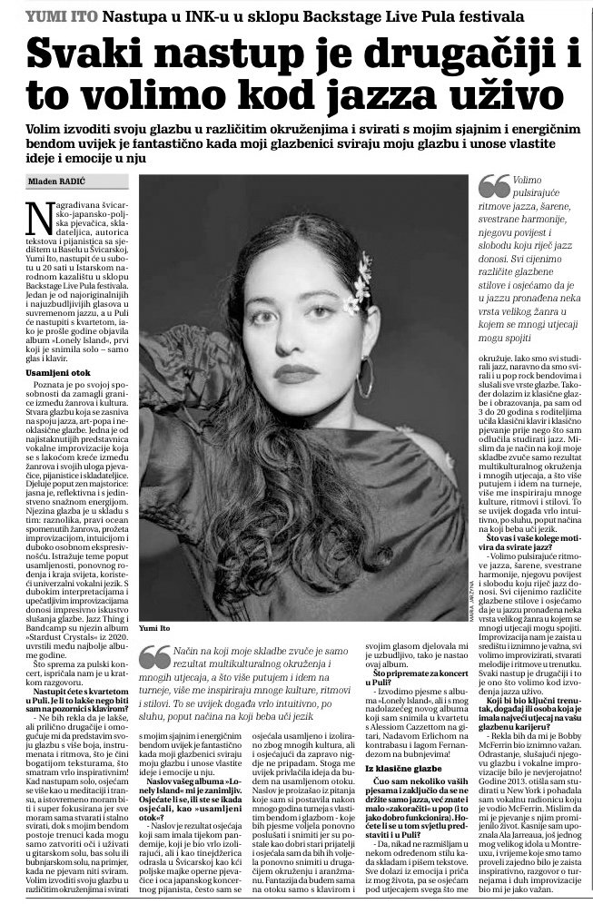 “A real discovery: Swiss with Japanese and Polish roots, pianist and singer Yumi Ito has created a world at the crossroads of jazz, classical, and pop. She first gained recognition at the Montreux competition and now presents Lonely Island, a radiant new solo album.”